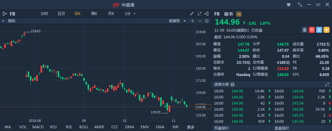 Facebook近期股价达到218美元历史最高位,对比历史最低18美元,在约6年时间内增长11倍。