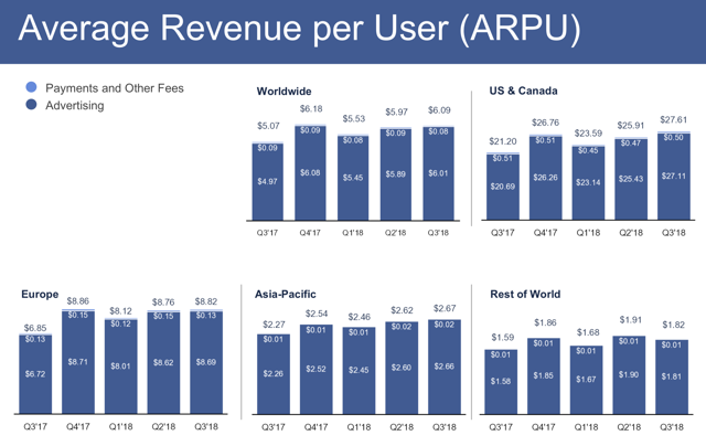 另一个重要因素是每用户花费(RPU),下图可见,北美27美元的RPU以及欧洲相对较高的RPU正在趋于稳定。