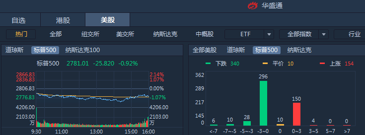 上周五,道琼斯跌幅0.77%,标普500指数收跌0.92%,纳斯达克跌幅1.65%。