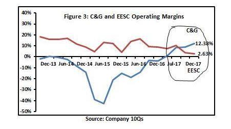 公司业务划分为两个部分—计算机和图像(CG)和企业,嵌入和半定制服务(EESC)。直到近期几个季度,CG分部在营收占比提升上开始落后于EESC,18年Q1是个转折点,CG营收占比达到前所未有的68%,远超EESC业务;