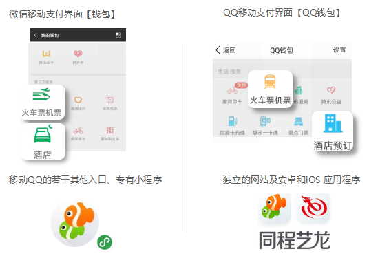 同程艺龙以交通票务及住宿预订为两大核心业务。在腾讯的支持下,成为微信钱包及QQ钱包内「火车票机票」及「酒店」入口的独家运营商,拿到这张值钱的「船票」,直接让同程艺龙的流量飙升。腾讯对同程艺龙可谓是宠爱有加!
