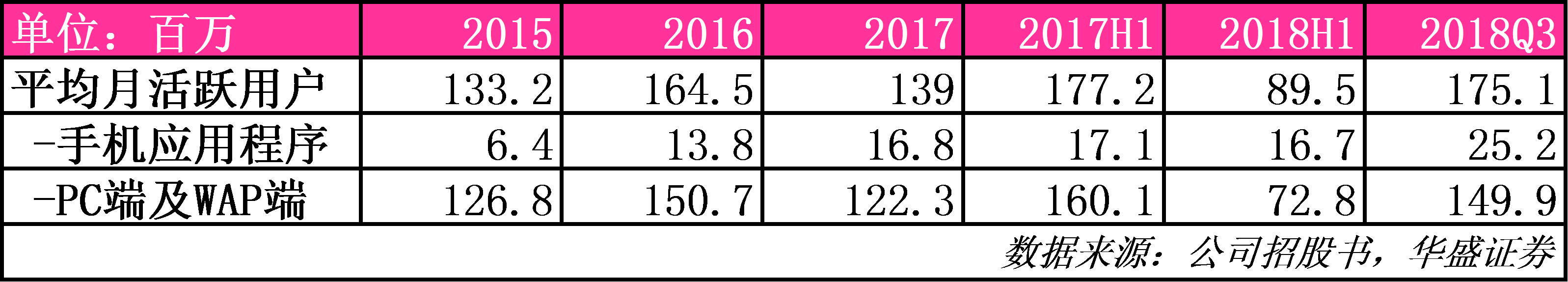 对此宝宝树的解释是由于搜索引擎采用的算法变更,即排名变化所导致的。这种搜索排名的变化对PC及WAP端的影响如此之大,以此我们可以简单地认为PC/WAP端更多是作为一个流量入口及对外展示,很难实现用户留存。而招股书也披露手机端占广告业务收入的绝大部分及电商业务的全部。因此公司实际活跃用户更多的需要看手机应用程序的活跃用户情况。