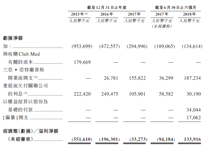 公司收益目前主要来源于度假村项目,经营利润从2015年的亏损3.76亿元人民币到2017年盈利7339万元人民币,而2018年上半年经营利润为1456万人民币,但是由于公司收购Club Med及运营亚特兰蒂斯、太仓等多个目的地旅游项目,至今仍处于亏损状态,2017年亏损2.95亿元,2018年上半年亏损1.35亿元。