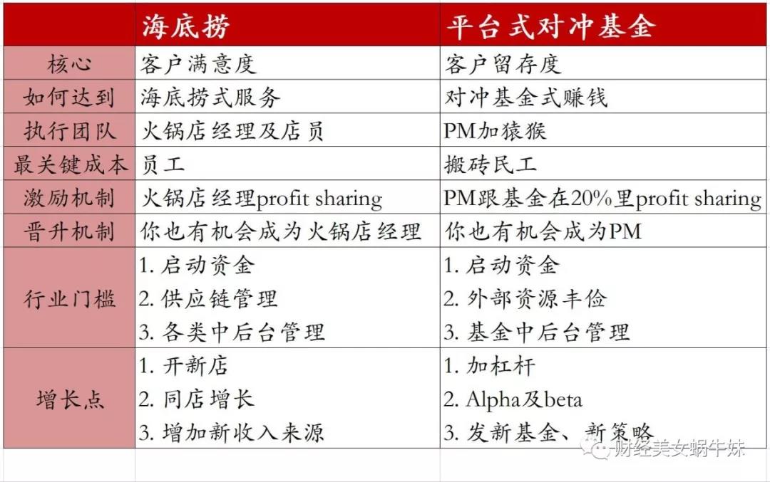 请先看蜗牛妹总结的海底捞PK平台式对冲基金,下面听我慢慢来给你们breakdown。
