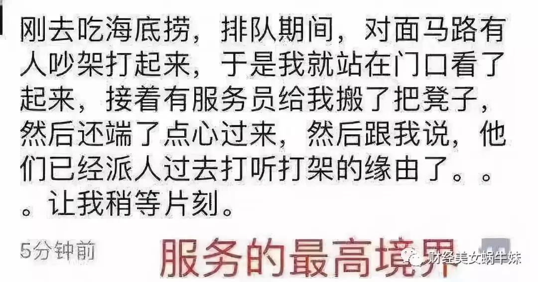 海底捞是真心把客户当上帝。这个跟HF一样的,要让客户开心,死心塌地把钱留在fund才能赚钱啊。