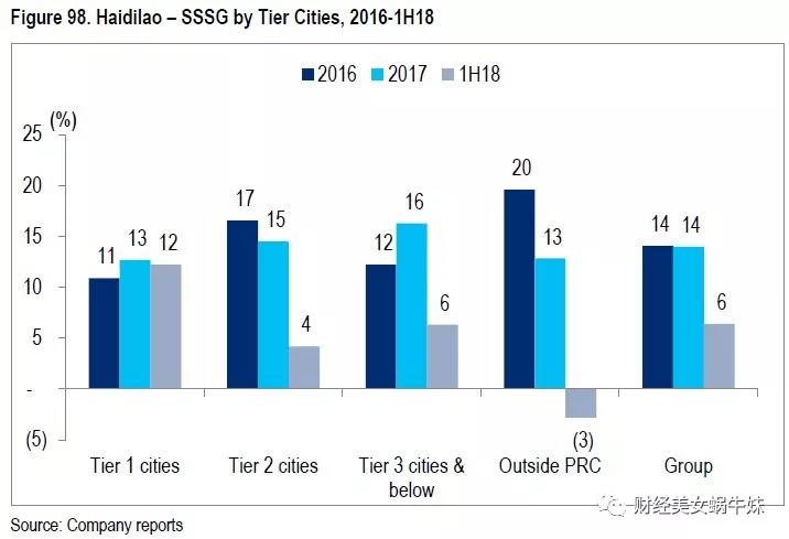 火锅店没那么多花儿。要么就是同店的增长,但是今年这个数据并不是很好看,citi剔除24小时营业及新开店影响,海底捞在2018年上半年的同店增速已经从2016及2017年的14%,降低到了6%。
