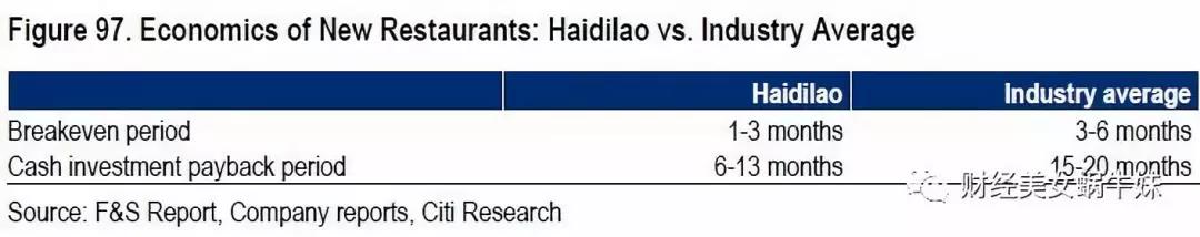 新店实现盈亏平衡,行业平均需要3-6个月,呷哺呷哺要3个月,海底捞只需要1-3个月。