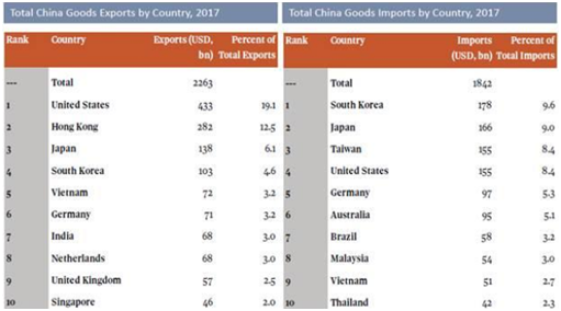 首先,在亚洲范围内,中国是日本、韩国最大的贸易伙伴;而在新兴市场,中国进口巴西等国家大量的资源及工业原料;发达国家方面,中国又是诸多国家的主要市场,重要的产品销售地。