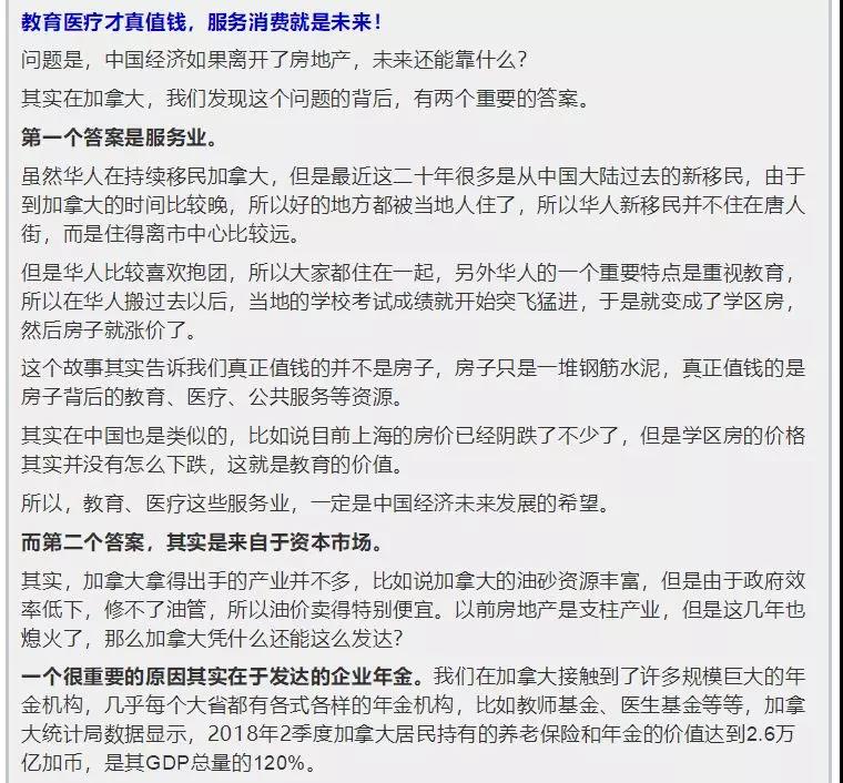 服务业、医疗、企业年金等都是未来最有价值的产业。加拿大的财富很大程度上来源于资本市场的收益。