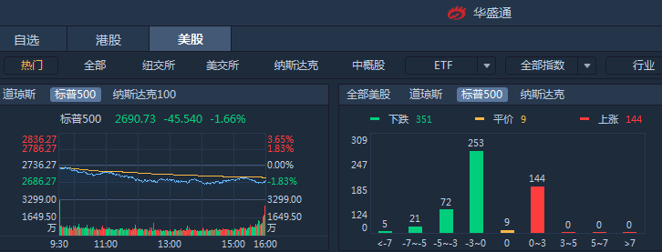 周一,标普500跌1.66%,道琼斯跌1.56%,纳斯达克跌3.03%。