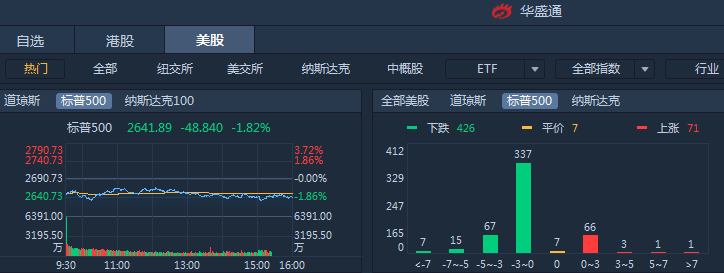 周二,美股大跌,标普500跌幅1.82%,道琼斯跌幅2.21%,纳斯达克跌幅1.70%。