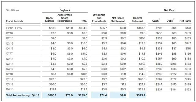 此外,由于股票回购,公司EPS可能会加速上升,所以今年市盈率有机会下降到14倍以下,是一个非常合理的估值。下图可见,即使近年大规模回购频繁,公司仍有超过1200亿美元的净现金头寸,而近期股价的下跌则让股息收益率变得更高。