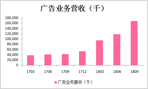 广告业务三季度营收1.37亿,同比增长179%环比增长43%,也是即直播及增值业务后又一高速增长的部门。广告主数量共664个,同比增长超过1500%。广告增长总体上要归功于效果类广告的推出(即在信息流中展示的广告)。其中三季度效果类广告的营收贡献了40%的广告收入,而同时管理层披露的adload(即可以理解为广告在整个页面中的比例)只有5%。综合来看随着广告主增加,算法改进及低广告覆盖,未来广告业务随着社区扩张还有非常大的增长潜力。
