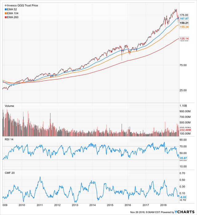 上表可见,QQQ十大持股公司股价均有所下跌,部分股票大幅下跌。笔者相信这些股票在下一次经济衰退之前,都会创下新的近52周新高,但Facebook除外。