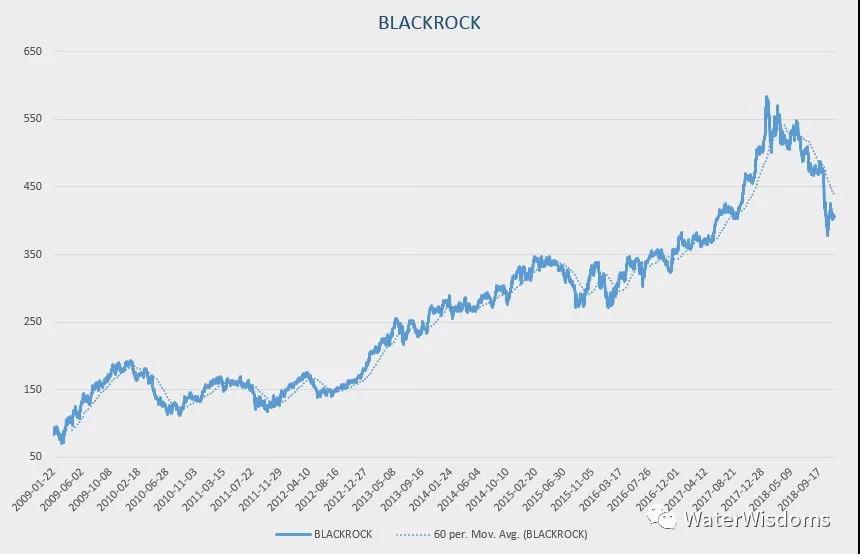在股票市场中,我们同样可以观察到ETF基金管理人之一的BlackRock,站在流动性的风口扩张AUM,以至于股价涨了近10倍 —— 其中有流动性泛滥的大beta,也有从AUM扩张层面战胜竞争对手的alpha。