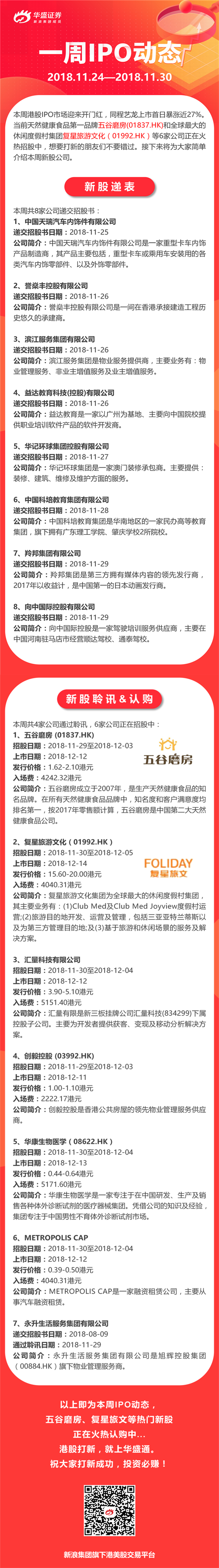一周IPO动态 | 五谷磨房、复星旅文正在招股中