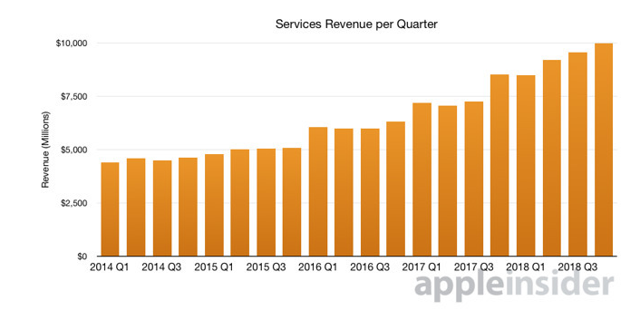 根据摩根士丹利分析师预测,到2023年公司的服务营收将达到1000亿美元,而该业务上季度的营收仅100亿美元,年度营收仅400亿美元,所以未来几年的高增速将引起市场关注。