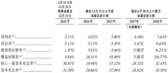 2015-2017年及2018年上半年,公司净利差、净息差3年以来保持平稳,但是计息负债平均成本保持上涨,分别为4.56%、5.08%、5.45%和5.76%。