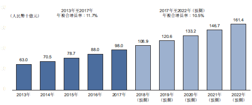 国内职业技能教育目标群体为15岁至21岁及22岁以上的学生,侧重于就职前培训,受益于政府政策推动、技术人才需求提升及就业竞争日趋激烈,职业技能教育重要性日益凸显,整体收入有望从2017年的980亿元增至2022年的1614亿元,年复合增长率为10.5%。