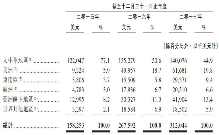 收入上来看,公司的总营收由2015年的1.67亿美元增加至2017年的3.13亿美元,年复合增长率为36.8%。公司的利润由2015年的871万美元增至2017年的2732万美元,年复合增长率为77.1%。公司收入来自游戏的广告占三成多;来自社交及电子商务的广告分别占一成多。公司在全球设有12个办事处,为200多个国家的公司提供广告投放服务;收入来自大中华地区比重近年逐渐降低,比重由2016年的50.6%,降至去年的44.9%,来自海外收入则不断上升。