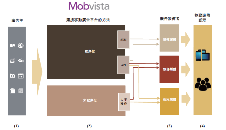 通过公司的移动广告平台可以为广告主提供一站式服务,其流程如下图所示,其中程序化收入占比不断提高,2018年上半年收入占比提高至47.8%。
