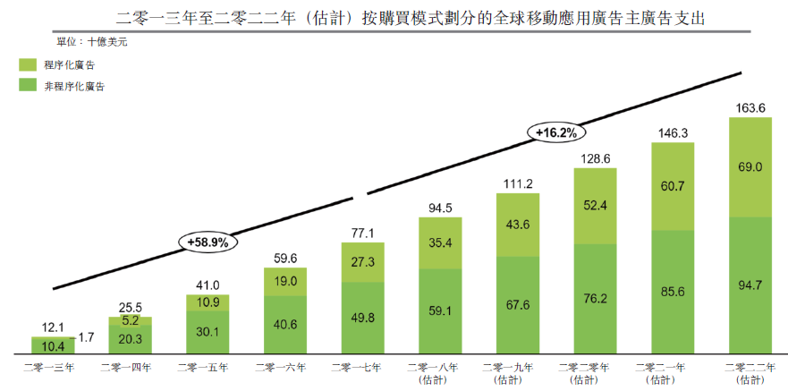 据艾瑞咨询报告显示,全球移动应用推广支出逐年攀升,2017-2022年均复合增长率达16.2%,行业仍处于快速发展时期。且由于程序化广告技术能更快捷高效地匹配广告主与媒体,程序化广告正日益普及。此外,中国市场已经渐趋饱和,中国互联网公司也开始向海外市场拓展,并拉动相应推广支出,有鉴于此,公司同样是采用全球化推广战略。