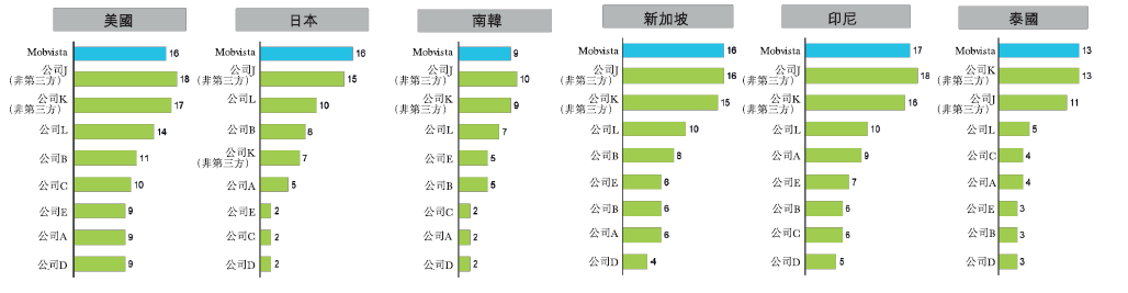 3、在美国、日本、韩国、新加坡、印尼、泰国等重要区域市场,为当地下载量排名前20的移动应用提供推广服务的广告平台中,汇量科技排名Top3。
