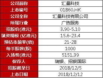 汇量科技于12月5日开启认购,以下是上市信息速览: