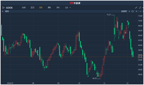 受该事件影响,虽然收入主要来自北美市场,今年5月才宣布进军中国市场的加拿大鹅,股价连续下跌,有道是“加拿大犯的错,让鹅背了锅”。