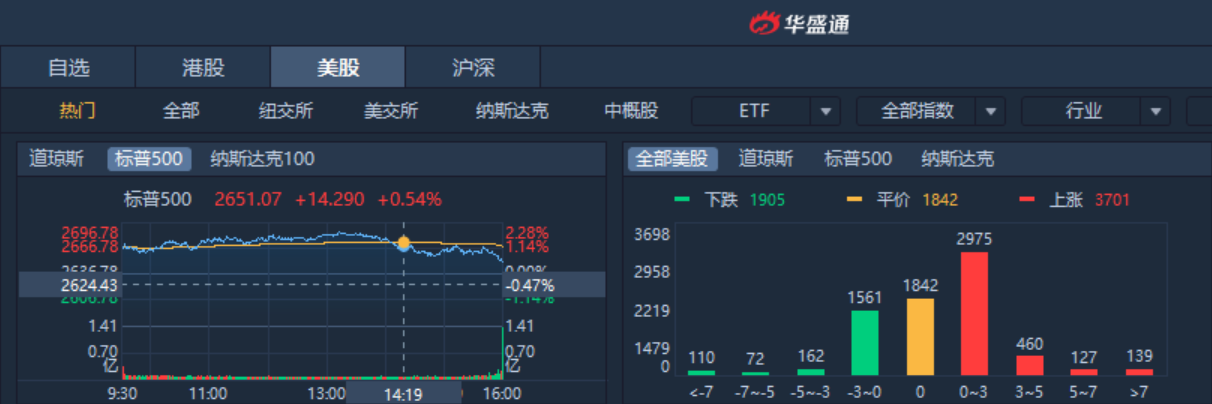 昨日,贸易谈判消息提振市场信心,美股三大指数集体上涨,标普500收涨14.29点,涨幅0.54%;道指收涨157.03点,涨幅0.64%;纳指收涨66.48点,涨幅0.95%。