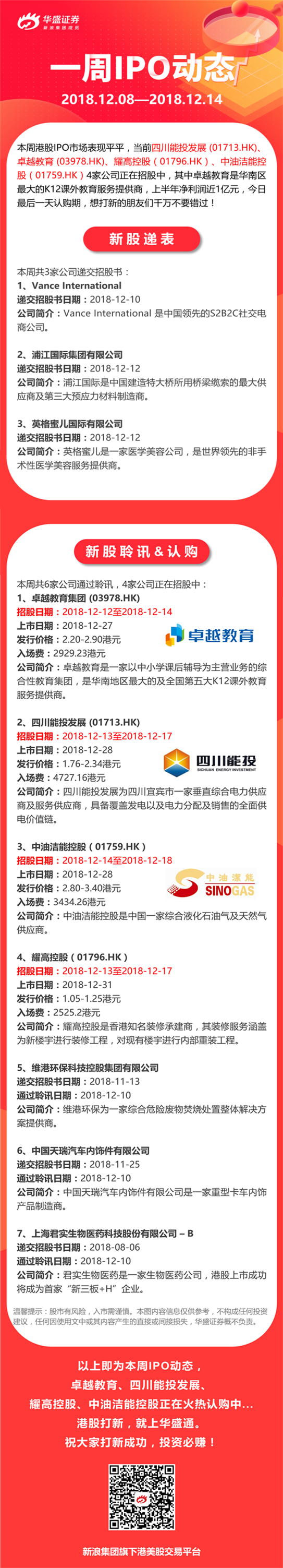 一周IPO动态 | 卓越教育、四川能投发展等4家公司正在招股中