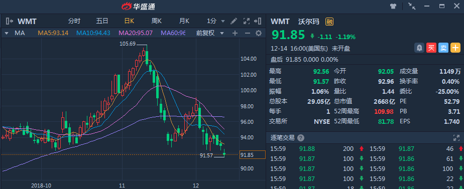 公司利润达到数十亿美元,同时还在于亚马逊抢夺电子商务市场,比如在印度的Flipkart,布局长期发展,尽管会拖累短期盈利,但是长期更为有利。尽管有人会觉得亚马逊是更好的选择,但是从财务数据上看,亚马逊收入为1179亿美元,净利润为30亿美元,而沃尔玛收入为5000亿美元,净利润为99亿美元,而且亚马逊不分红,沃尔玛股息收益率为2.32%。所以,在亚马逊估值太高的情况下,沃尔玛未必不是一个好选择。