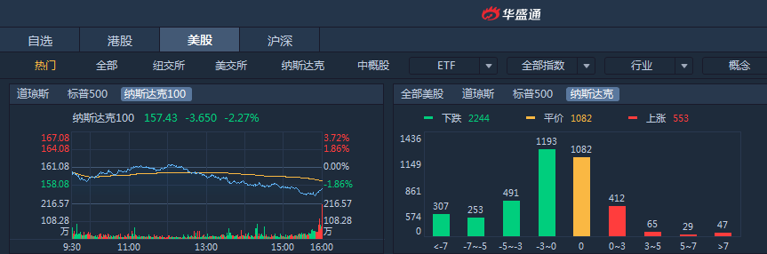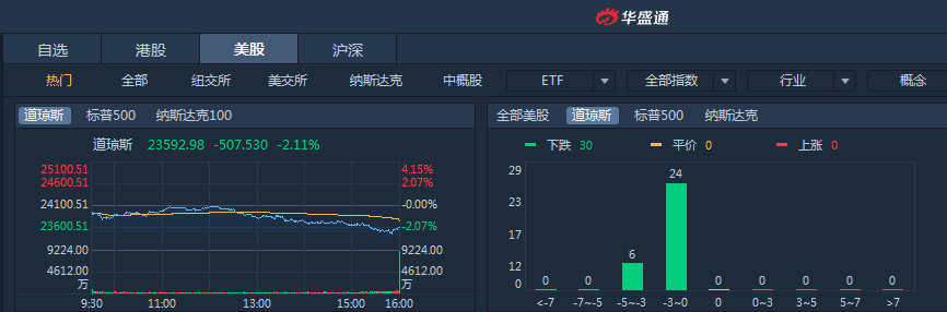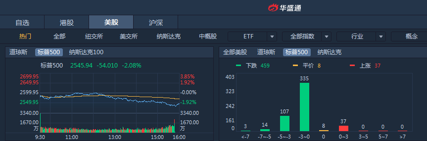 由于市场对加息及经济前景的焦虑,周一美股再次大跌,三大指数均跌超2%,标普500下跌2.08%,道指下跌2.11%,纳指下跌2.27%。