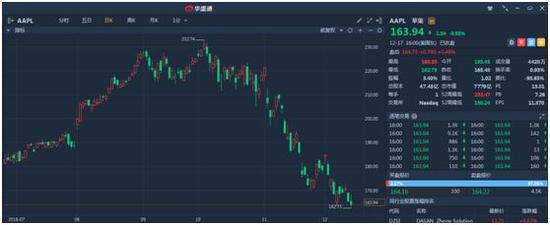 昨夜美股收盘三大股指跌幅均超2%,苹果下跌0.93%,股价跌至163.94美元。从10月高点的232美元,苹果已经下跌28%,尤其是在11月财报发布之后,由于管理层的悲观预期,公司股价加速下跌。