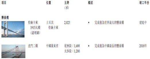 众所周知,基建行业特别是大型工程,需要较高的进入门槛才能成为其制造商及供应商。尤其是在业内人力资源及能力有限的情况下,例如特大桥缆索市场,仅有少数参与者,而公司过往记录、资本及产能以及资格认证和技术规格,都构成了公司有效的护城河。