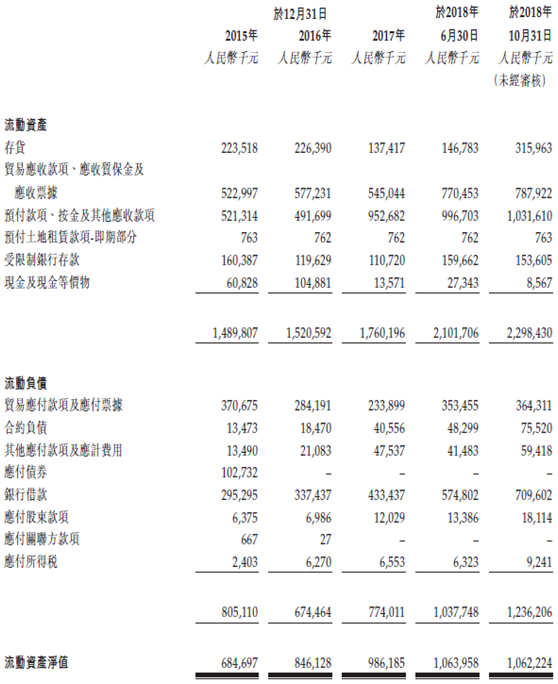 基建行业一个重要门槛公司资产实力,公司净资产保持稳定增长,尤其是随着新一轮基建项目投入建设,公司的应收账款显著增加,以及为获得优惠原材料价格而预备接下来工程项目的预付账款增长接近1倍。说明公司开始新一轮的项目建设进程,同样地,公司银行借款、合约负债在2018年大幅上升,说明用于参与竞标及支付款项的增长,体现了公司营运资金需求的提高,公司业务项目数量的增加。