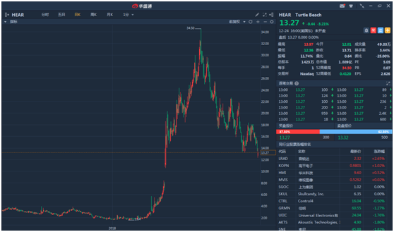 公司多年来一直专注专业媒体处理及音频处理产品开发,主要产品包括游戏耳机,在全球游戏玩家群落中可谓鼎鼎大名。“大逃杀”热潮不仅席卷了游戏界,也极大带动了游戏硬件周边产业的发展,作为高端游戏耳机,乌龟海岸造就了股价仅仅5个月狂飙16倍的“传奇”。