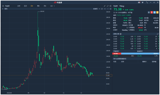 伴随加拿大通过大麻娱乐合法化,以及全球酒业巨头“星座集团”投资另一家大麻公司Canopy Growth,造就迄今为止最大的一比大麻领域交易,受到多种因素的催化下,Tilray股价在9月大幅飙升,最高达到300美元,虽然之后回落,但基本保持在70-100美元的水平。