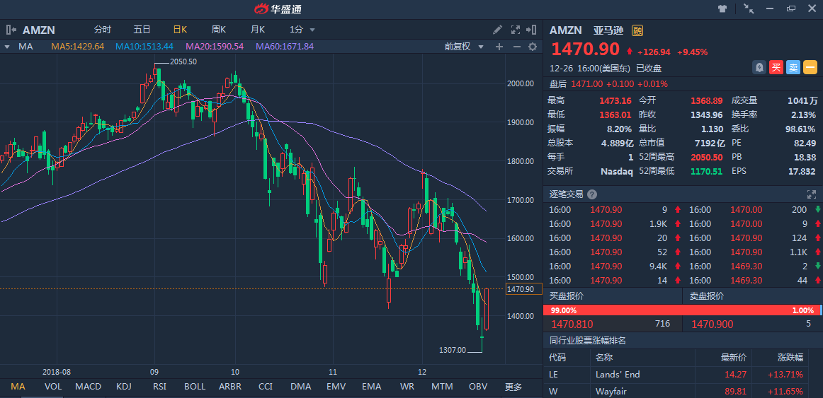 截至目前,FAANG五巨头之一的亚马逊股价自9月初高点下滑近31%,高出同期标普500的跌幅19%,一方面是整体市场调整,尤其是科技板块的下跌,另一方面,公司财报展望不及预期。公司周三宣布今年假日季销售创新高,受消息刺激股价单日大涨9.5%。