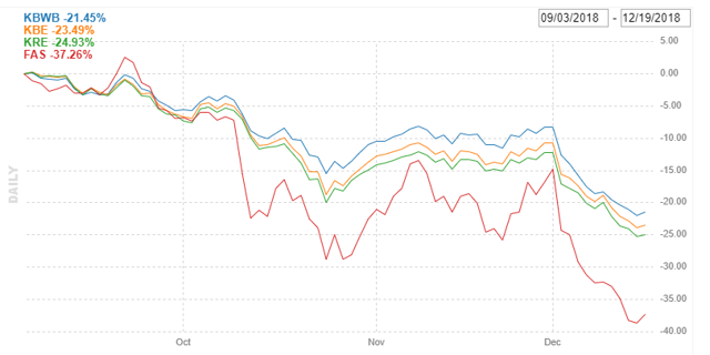 综上所述,笔者的核心论点是,因为对2019年经济衰退的担忧过度,美国股市应该会反弹,银行股作为受打击最多的周期股反弹幅度最大,而且还能受收益率曲线变化的利好。