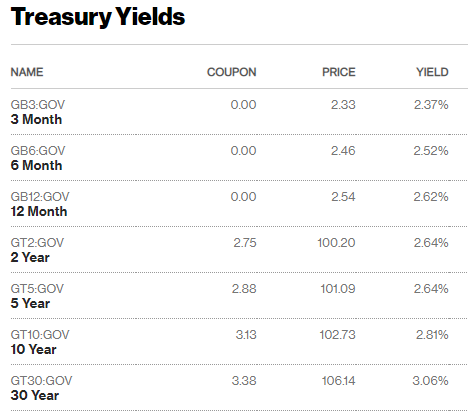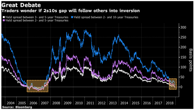 因为银行的盈利模式来自于长期和短期的贷款利差,收益率曲线对银行非常重要,所以三周前收益率曲线部分倒挂导致银行股遭受。下图可见,近期的收益率曲线非常平缓。