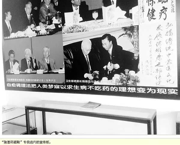 吴炳新的学生乌力吉则推出一双可以让糖尿病自我痊愈的鞋 —— 驰誉药磁鞋。他的销售主要在新疆和成都展开,一场活动卖四五千双鞋是非常正常的。成都当时一篇报道记载,数万人排队购买药磁鞋,让交通都瘫痪了。