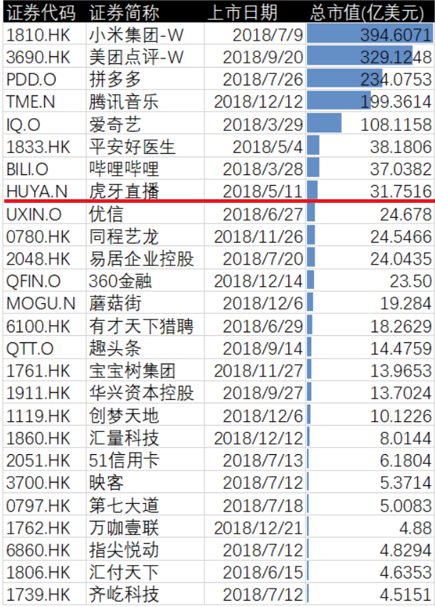 2018年,小米、美团、腾讯音乐、拼多多、哔哩哔哩、虎牙、爱奇艺等一系列互联网新秀纷纷加入上市公司豪华套餐,可谓热闹非凡。