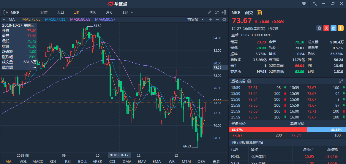 耐克上周四美股盘后公布19财年Q2财报,收入盈利均超大超分析师预期,其股价盘后飙升近7%,周五收盘涨7.21%。