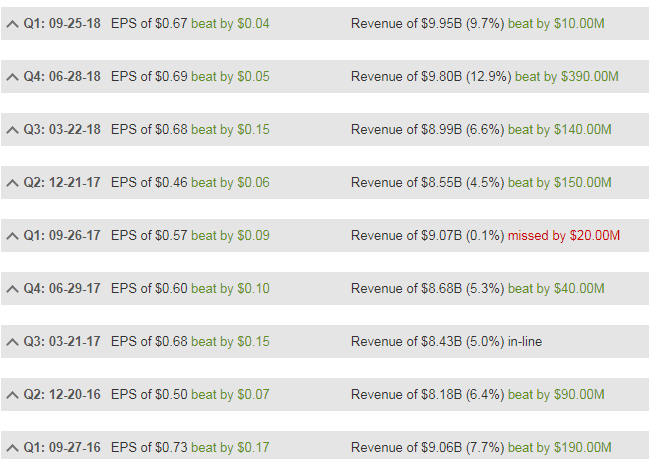 与前几季类似,季度营收和盈利均超预期。季度净利润同比增10%至 8.47亿美元,EPS每股52美分,好于分析师此前预期的46美分。销售额同比增长10%,至93.7亿美元,亦超过预期的91.8亿美元。