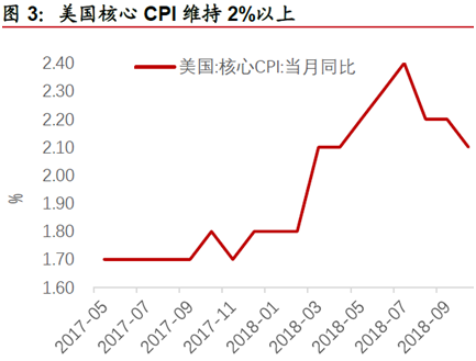 货币政策上,由于今年以来美国市场利率上升,美联储为了与市场同步或维持12月加息惯性,但从中期来看由于美国经济增长难以维持上升态势,2019年美联储加息次数或低于市场预期,呈现边走边看缓慢升息的相机策略。