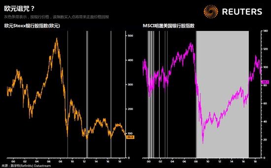 但这些因素都无法完全为他解释,为何欧元区银行股指数在过去20年内下跌了大约三分之二。