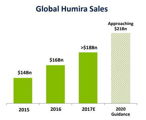 而在公司的主要市场——美国,由于专利保护更严格,2023年之前都不会出现阿达木单抗的仿制药,其销量也会以10-12%的年增速增长,到2020年达到210亿美元的峰值。