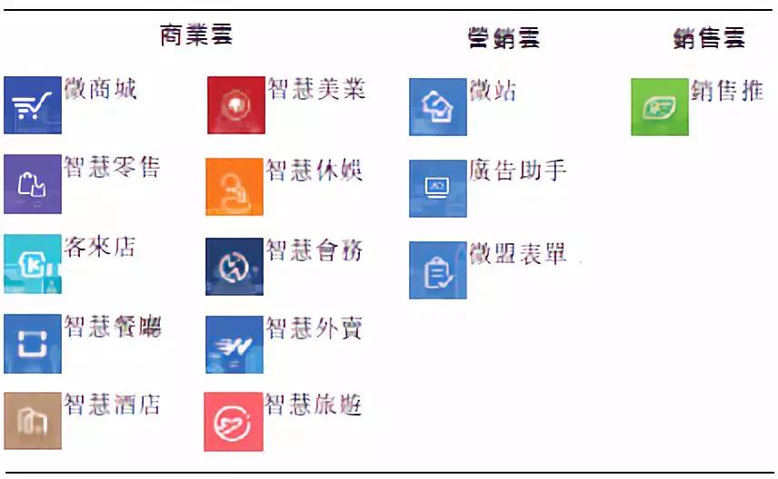 微盟的SaaS产品分为商业云、营销云、销售云三种云服务产品,通过不同的独特功能满足商户的特定需求,从多角度帮助了传统中小企业克服新零售时代的挑战。招股书显示,微盟已有十个商业云解决方案、三个营销云解决方案及一个销售云解决方案。