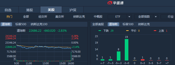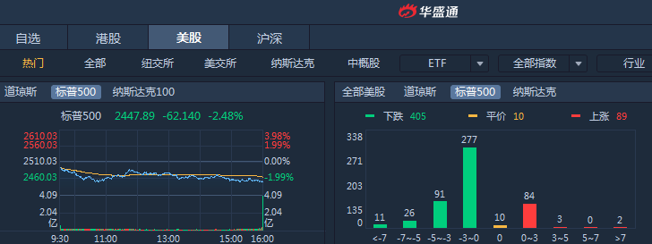 周四美股再次大跌,道琼斯跌幅2.83%,标普500指数跌幅2.48%,纳斯达克跌幅3.04%。